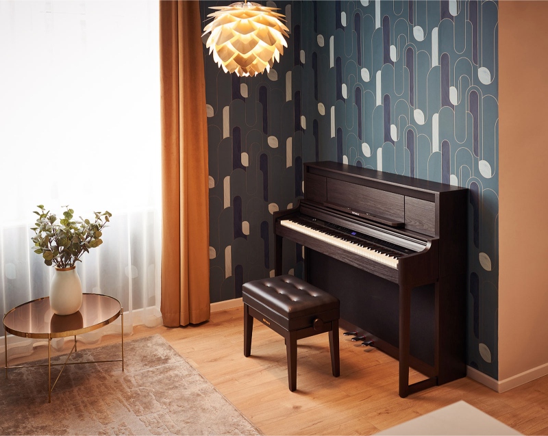 העיצוב האלגנטי שלו מתאים לסלון או לכל חלל יוקרתי אחר, ומשתלב בקלות בבית. הממשק הנגיש וקלות השימוש מבטיחים נוחות בנגינה, והמבנה הקומפקטי והמרשים שלו מספק חוויית נגינה איכותית במרחב מצומצם.