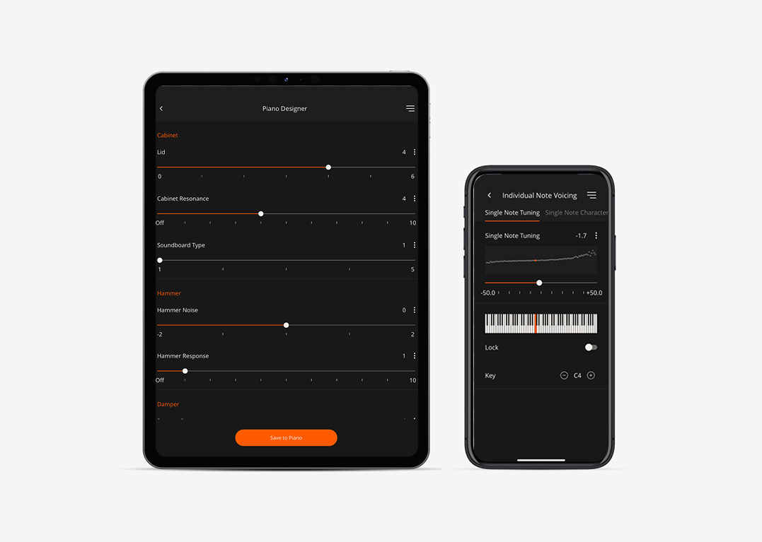 התאימו את הצליל של הפסנתר שלכם בדיוק לטעמכם – ללא צורך בטכנאי. ניתן לכוון מיתרים, טמפרמנט, גוון ועוד בקלות. בעזרת האפליקציה של Roland Piano, אפשר להעמיק עוד יותר בפרמטרים ולהתאים את הצליל לחלל בו אתם מנגנים, כך שהביצועים האקוסטיים יהיו מושלמים בכל מקום.