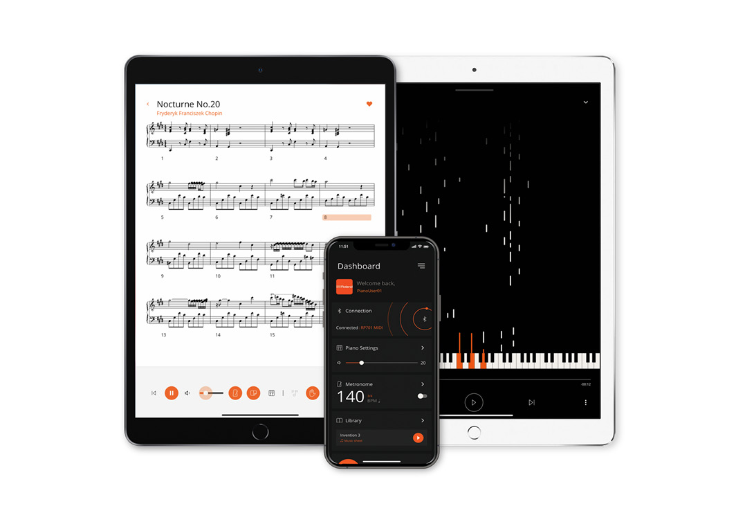 הפסנתר מצויד במגוון כלים דיגיטליים שיעזרו לכם לשפר את הנגינה והביצועים. ניתן להתחבר לאפליקציית Roland Piano ולאפליקציות מוזיקה נוספות באמצעות Bluetooth, להסטרים שירים אהובים, לגשת לתווים דיגיטליים ולהתאים הגדרות מתקדמות. תוכלו גם להקליט את האימונים שלכם, לנגן דואטים בטווח צלילים זהה עם Twin Piano Mode, ולשמור על קצב מדויק בעזרת המטרונום המובנה.